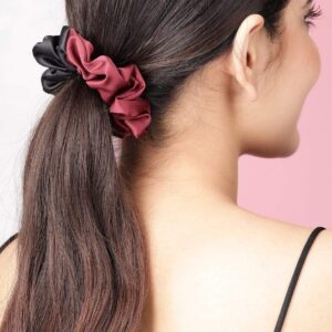 Modern Bi-Hue Satin Set of 2 Scrunchies – Black