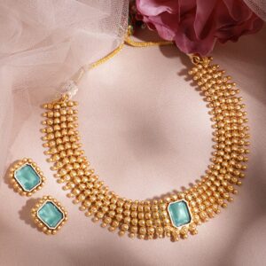 22K Gold-Plated Intricate Green Stone and Golden beaded Traditional Jewellery Set