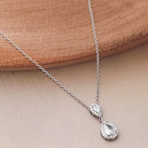 Rhodium Plated AD & Cubic Zirconia Studded Teardrop Statement Jewellery Set – Silver