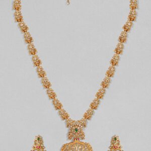22K Gold-Plated White Kundan & Cubic Zirconia Stone Studded Necklace Set
