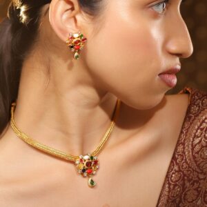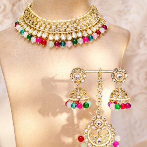 22K Gold plated Kundan Studded Multicolour Beaded Chandbali Motif Necklace Set – Multicolor