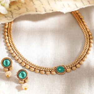 22K Gold-Plated Golden Beads Studded Beaded Traditional Jewellery Set