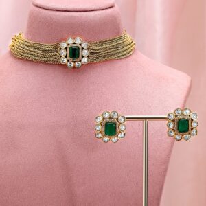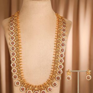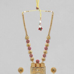 22K Gold-Plated Ruby & Emerald Stone Handcrafted Necklace Set with Traditional Paisley Motif