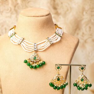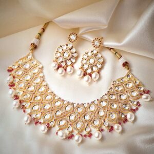 24K Gold Plated Kundan Studded Pearl Beaded Necklace Set – Gold