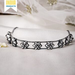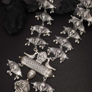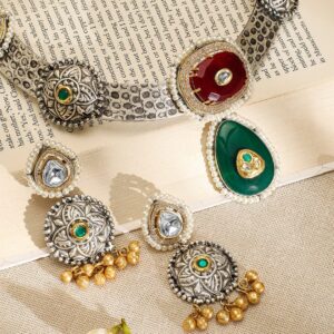 Silver Oxidised Necklace Set With Studded Pink Stones – Silver