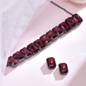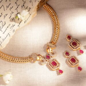 Rhodium-Plated Ruby Red & White Cubic Zirconia Studded Elegant Necklace Set – Red