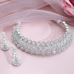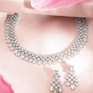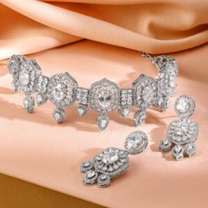 Rhodium Plated AD & Cubic Zirconia Studded Teardrop Statement Jewellery Set – Rhodium Plated
