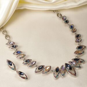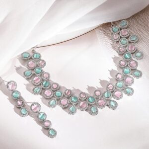 Rhodium-Plated Stone-Studded Jewellery Set – Silver