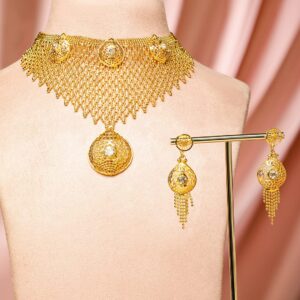 18K Gold Plated AD & White Cubic Zirconia Studded Necklace and Earring Set – Gold