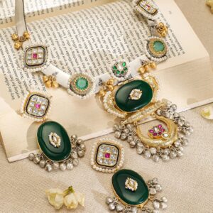 22KT Gold Plated Stone Studded Jewellery Set – Green