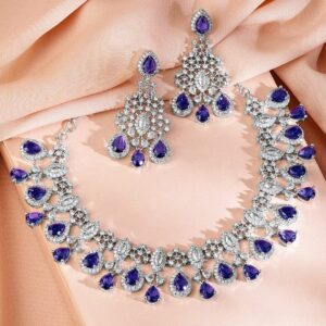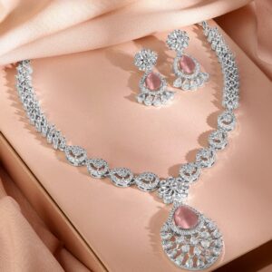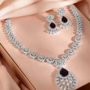Silver-Plated Cubic Zirconia Studded Premium Jewellery Set – Silver