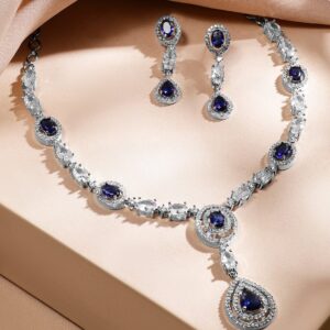 Rhodium-Plated Blue Topaz Cubic Zirconia Studded Necklace Set – Sky Blue