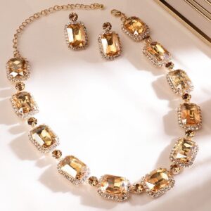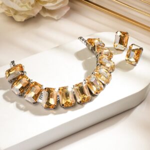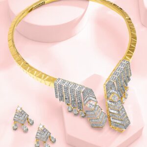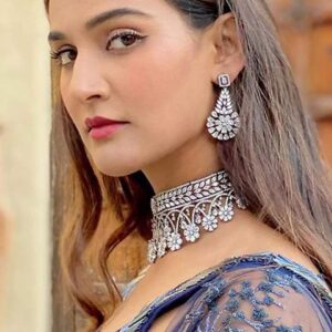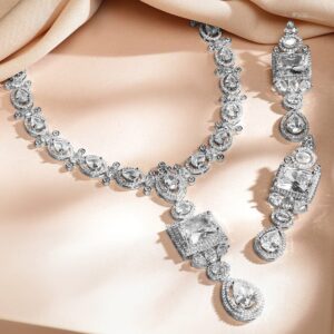 Silver-Plated AAA Cubic Zirconia Studded Geometric Statement Choker Necklace Set – Silver