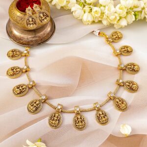 Regal Gold Tone Temple Necklace Set with Green, Pink & White Stones – Gold