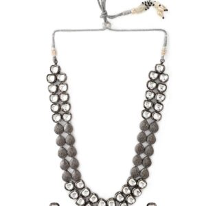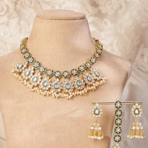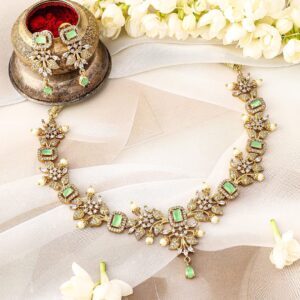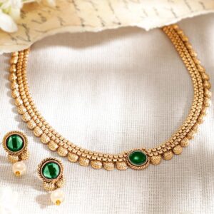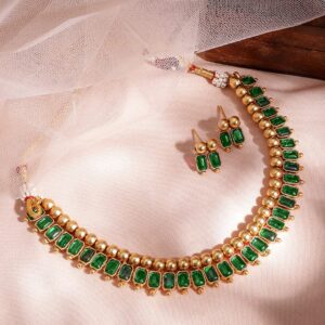 Silver Plated Emerald Green Stone Studded Necklace Set – Green