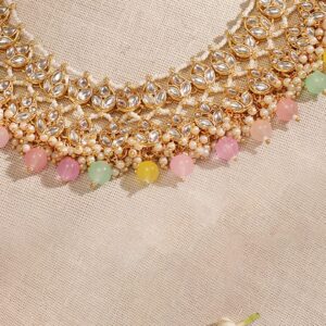 22K Gold-Plated Ruby Pink, Emerald Green, Kundan & Pearl Bead Accents Necklace Set