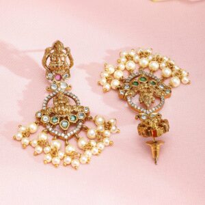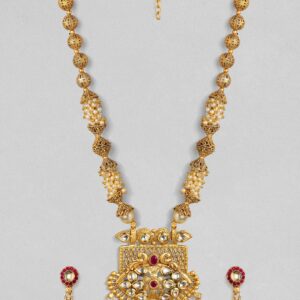 22K Gold-Plated Ruby Pink & Kundan Studded Temple Necklace Set with Jhumka Earrings – Gold