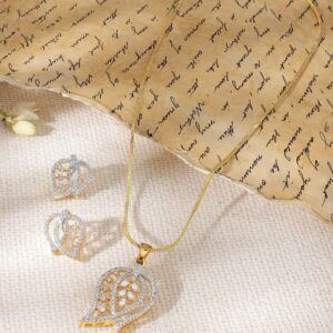 18K Gold-Plated Cubic Zirconia Studded Starburst Drop Classic Pendant Necklace Set