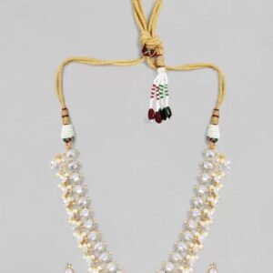 Gold-Colored Pendant Necklace Set with White Beads and Small Stones – Gold::White