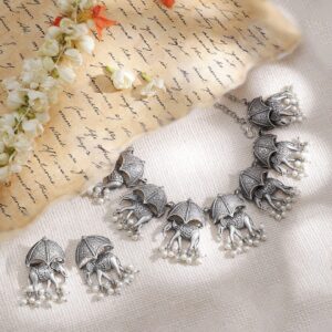 Oxidized Silver -Plated Pearls Beaded Elephant Shape Traditional Jewelry Set