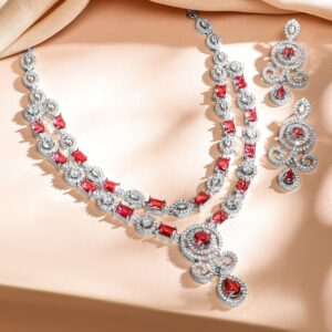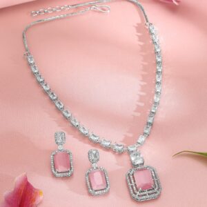 Rhodium-Plated Ruby Pink AD & Cubic Zirconia Studded Necklace Set – Ruby Pink