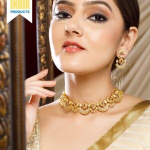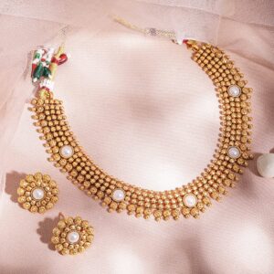 18K Gold-Plated Traditional Necklace Set with Multilayer Gold Beads & Filigree Floral Design for Women – Gold