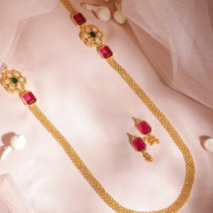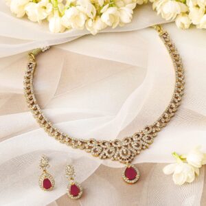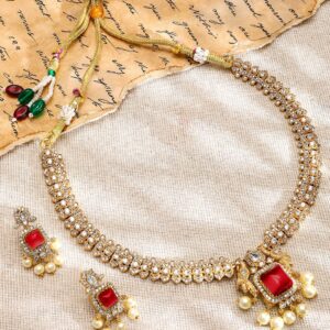 22K Gold-Plated Ruby Red & Cubic Zirconia Studded Traditional Necklace Set
