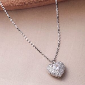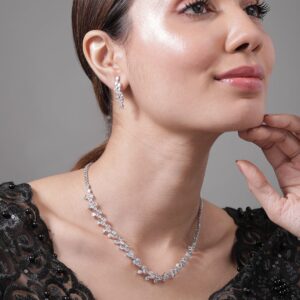 Rhodium-Plated AD & Cubic Zirconia Studded Statement Necklace Set – Silver