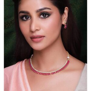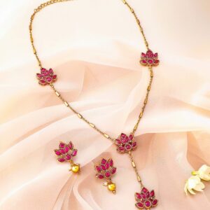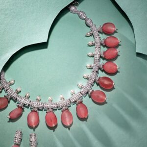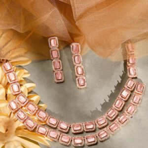 Rose Gold Pink Gemstone Studded Elegant Necklace Set – Rose Gold