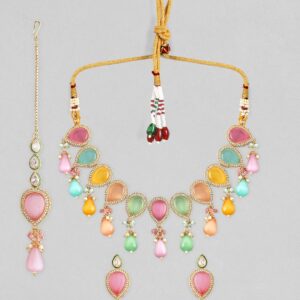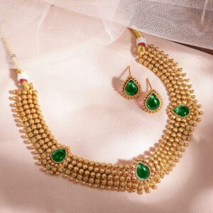 22KT Gold-Plated Stone-Studded Necklace Set – Gold