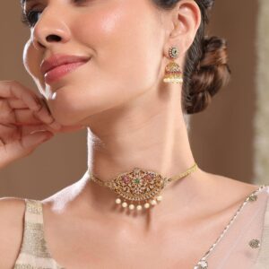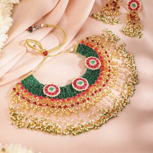 24K Gold-Plated Kundan & Beaded Handcrafted Ruby, Emerald & Pearl Necklace Set – Multycolor