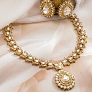 18K Gold-Plated White Pearl Beaded & Kundan Studded Pendant Necklace Set