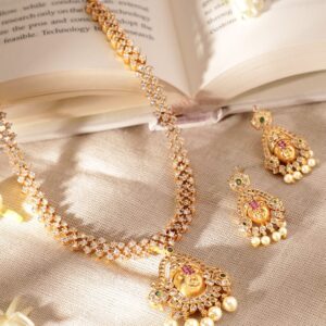 Elegant Golden AD Necklace Set – Gold