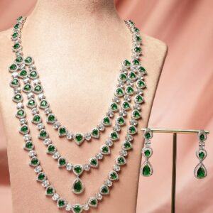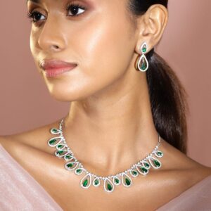 Rhodium-Plated Emerald Green AD & Cubic Zirconia Studded Necklace Set – Green