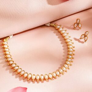 22K Gold-Plated Glossy Pearl Beaded Kundan Handcrafted Choker Necklace Set