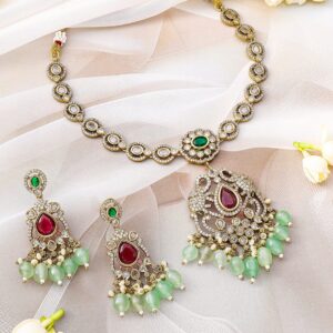 22KT Gold Plated Stone Studded Jewellery Set – Multicolor