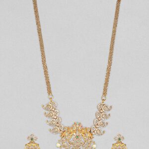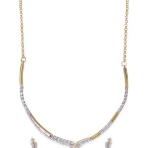 Rhodium-Plated Crystal AD & Cubic Zirconia Studded Statement Luxe Necklace Set – Gold