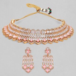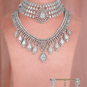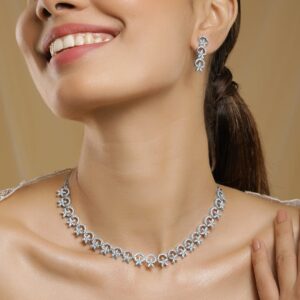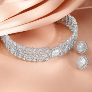 Rhodium-Plated Cubic Zirconia-Studded Choker Jewellery Set – Silver