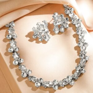 Rhodium Plated Multi Crystal Statement Necklace Set – Silver