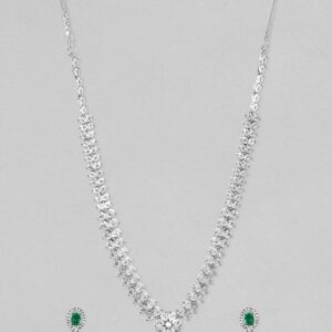 Rhodium-Plated Pastel Green AD & Cubic Zirconia Studded Necklace Set – Pastel Green