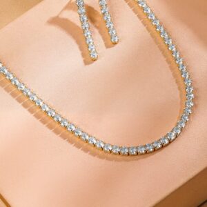 Luxury Rhodium Plated Zirconia Studded Statement Choker Necklace Set – Silver