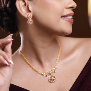 Rose Gold Pink Gemstone Studded Elegant Necklace Set – Rose Gold