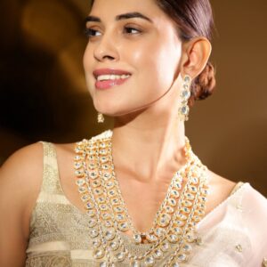 22K Gold-Plated Kemp & Zirconia Crystal Studded Handcrafted Pearl Beaded Necklace Set – Gold