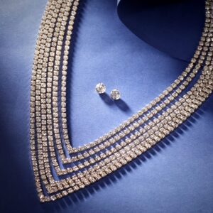 Rhodium Plated White Zirconia Studded Layered Necklace Set – Silver