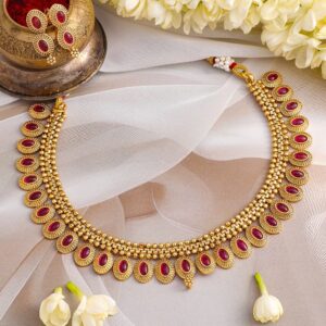 24K Gold Plated Handcrafted Ruby Stone Temple Necklace Set – Gold