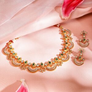 18K Gold Plated Crystal Emerald Studded Statement Necklace Set – Green