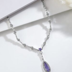 Rhodium Plated Purple Sapphire Teardrop Pendant Necklace Set with AD & Cubic Zirconia – Silver