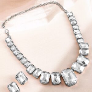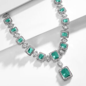 Rhodium-Plated Emerald Green Cubic Zirconia Studded Statement Necklace Set – Green
