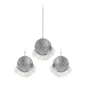 Rhodium-Plated AD & Cubic Zirconia Studded Statement Necklace Set – Silver