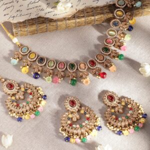 Silver Plated Multicoloured Stone Studded American Diamond Necklace Set. – Silver